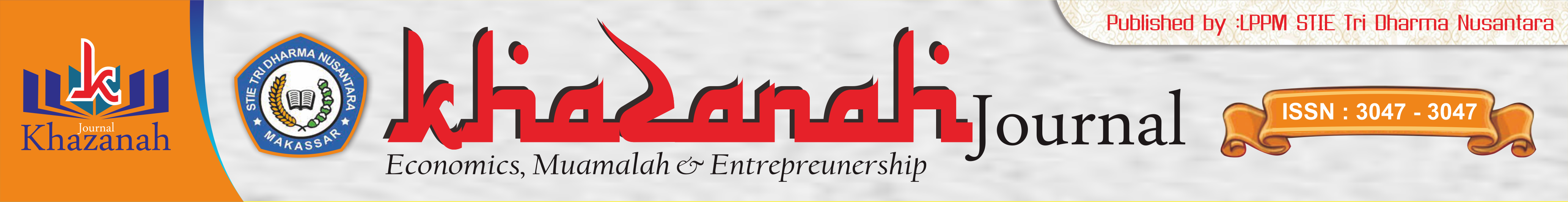 Khazanah Journal: Economics, Muamalah dan Entrepreneurship Merupakan salahsatu jurnal ilmiah yang diterbitkan oleh : LPPM STIE Tri Dharma Nusantara, terbit perdana Desember 2023, jurnal ilmu ekonomi yang melakukan peer-review akses terbuka bersifat Open Access Journal (OJS) yang menyediakan artikel-artikel jurnal yang dapat diunduh secara gratis. Bertujuan menerbitkan artikel yang berkaitan dengan masalah ekonomi, bisnis, kewirausahaan dan Ekonomi Islam (Mu'amalah). Jurnal ini juga memuat artikel yang diterbitkan secara berkala Setiap Bulan April, Agustus dan Desember diperuntukkan bagi akademisi nasional dan internasional, peneliti, regulator, dan masyarakat umum. Khazanah Journal : Economics, Muamalah & Entrepreneurship menyambut penulis dari berbagai latar belakang kelembagaan dan menerima artikel penelitian empiris yang ketat dengan atau pendekatan apa pun yang relevan dengan ekonomi Indonesia dan konteks atau konten bisnis, selama penelitian tersebut sesuai dengan salah satu dari disiplin ilmu ekonomi umum dan ekonomi Islam. Khazanah Journal : Economics, Muamalah & Entrepreneurship memiliki tujuan untuk menyebarluaskan penelitian dalam Ilmu Ekonomi, Ilmu Mu'amalah dan Kewirausahaan ( Enterpreneurship ).